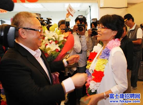 4月22日,富士康科技集團200余名一線優(yōu)秀工人,從香港國際機場乘坐包機抵達臺灣桃園國際機場,開啟為期一周的臺灣之旅,這也是大陸首個工人代表團赴臺灣旅游。富士康副總裁盧松青等高層主管到機場接機,為員工獻上鮮花,感謝他們對富士康的貢獻和付出。工人抵臺后,吸引了大批臺灣媒體跟蹤報導和臺灣民眾的高度關(guān)注。來看我們的特派記者從現(xiàn)場發(fā)回的報道吧。