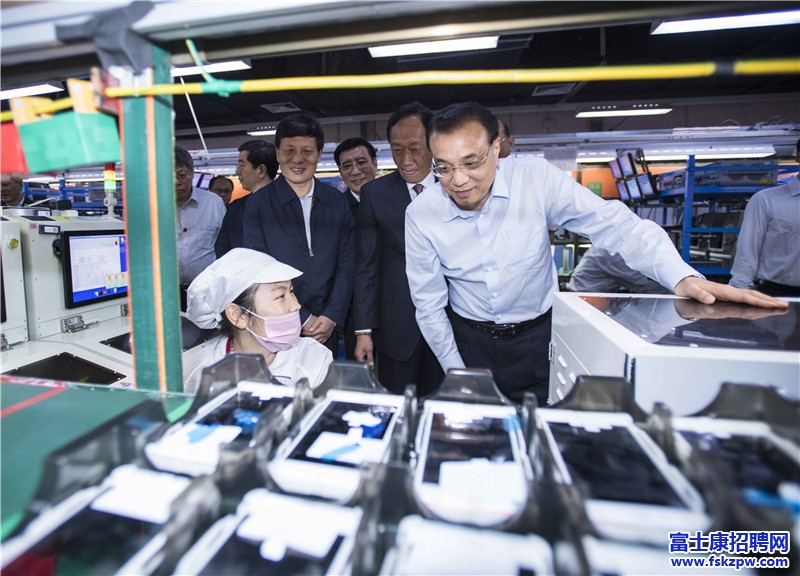 富士康鄭州科技園里,總理鼓勵年輕人