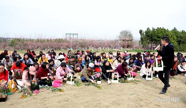 當(dāng)天下午,古代石橋,春風(fēng),長城白色的墻壁和瓷磚,梅花附近,一百多名女同事盤腿坐在草地草坪上,手中搖曳著鮮花,一片插花出生于。同事們拿出相機(jī),用鮮花拍下照片,在朋友圈中把他們的作品淡化。