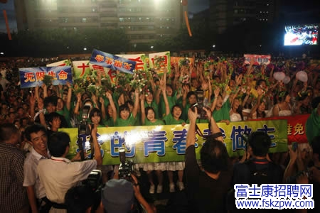 身披五彩霞衣,頭戴面具彩發(fā),鑼鼓喧天,花車巡游,小丑、唐僧師徒、足球先生、灰太狼……18日下午,富士康龍華園區(qū)成了一片歡樂的海洋,2萬名員工盡情享受自己的嘉年華,激情狂歡!各事業(yè)群由彩車、領隊、拉拉隊、游行員工組成的巡游車隊,載歌載舞,所到之處無不掀起一片歡樂的海洋,各種搞怪的動作與表演令人群中不時爆發(fā)出笑聲?!坝心?,有我,有未來”、“火紅青春,無限生命”、“愛生命,愛生活,愛家人,愛公司”等標語彰顯著同仁無限的青春活力與對生活的熱愛。“總裁請放心,百萬心相隨”、“總裁:我們永遠支持富士康!”的標語則令人倍感溫馨。