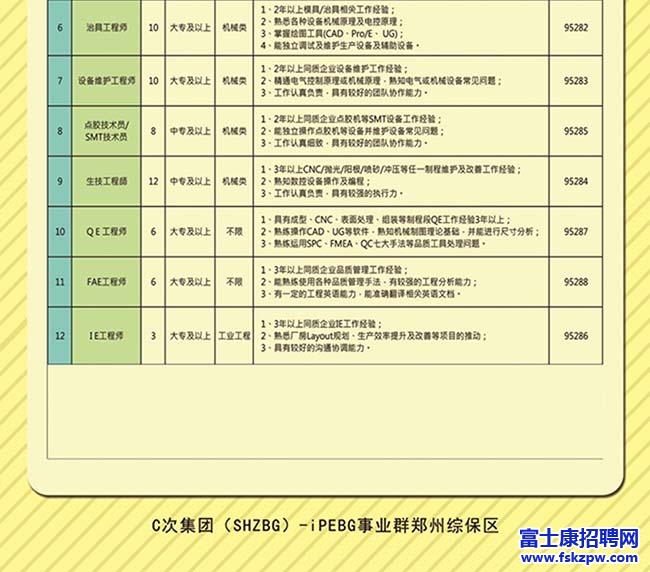 SHZBG 鄭州富士康中高階人力招募崗位匯總