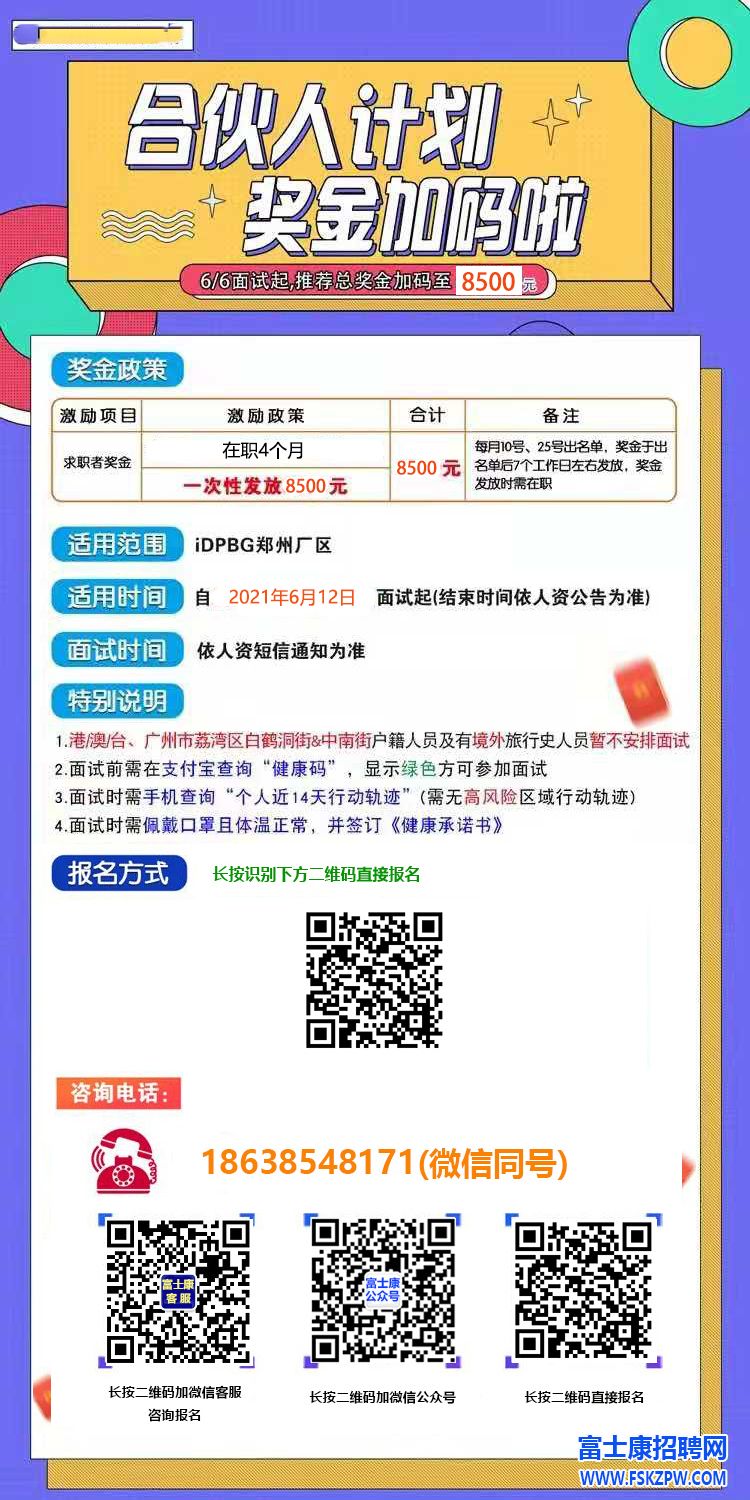 更多鄭州富士康最新招聘信息,請收藏本站,本站為鄭州富士康招聘網(wǎng)官網(wǎng)。