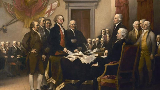 完成后由德高望重的富蘭克林對其中的一些對方做了修改,然后亞當(dāng)斯對杰斐遜的文稿非常滿意,他對杰斐遜說:“我將捍衛(wèi)這里面的每一個字?!?/p>