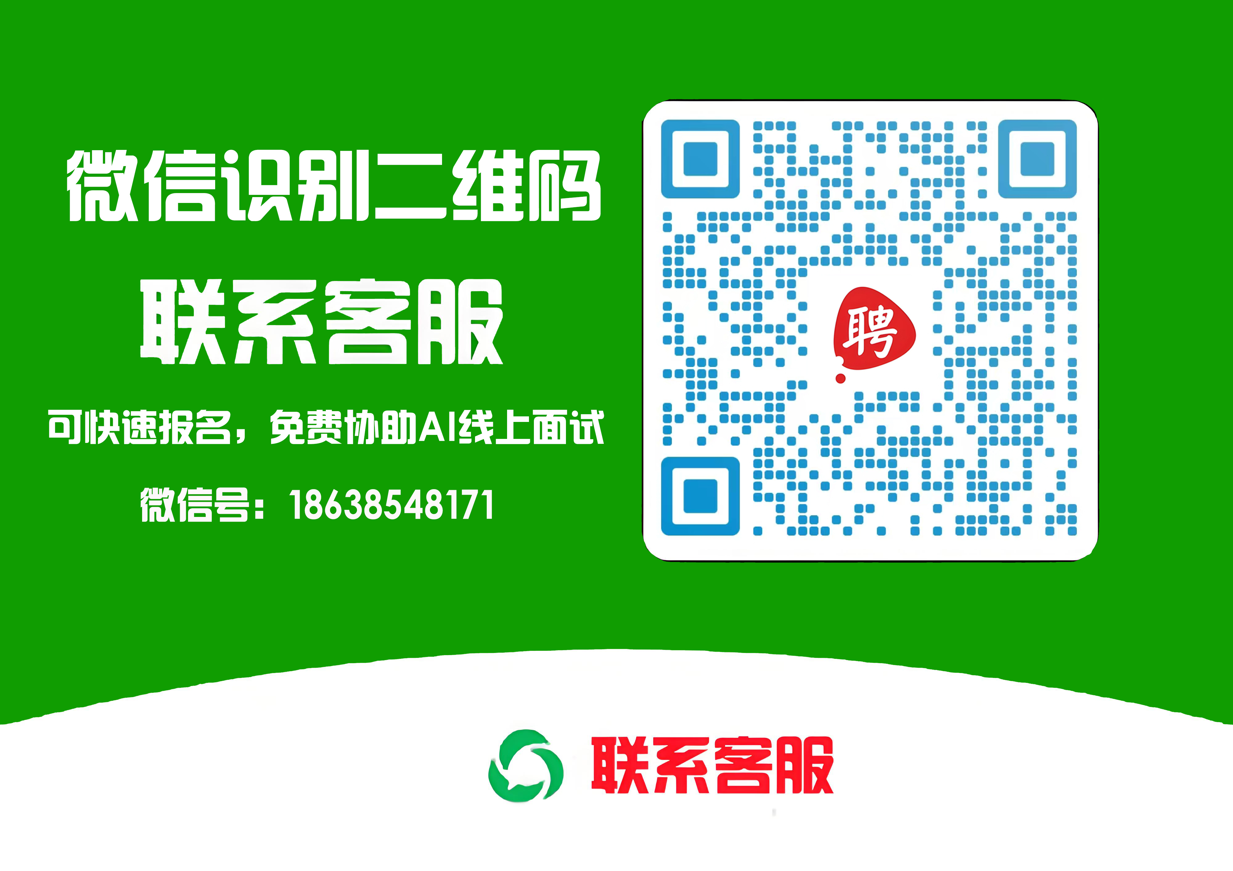 3、招募流程:點擊或者長按二維碼圖片預(yù)約報名-->聯(lián)系招募客服-->確認(rèn)預(yù)約報名結(jié)果-->AI線上面試、報到、簽訂合同、入職。